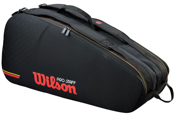 Wilson Pro Staff Classic 6 Pack Bag je preprosta, klasična in tekmovalno pripravljena torba. Dva glavna predala omogočata urejeno shranjevanje loparjev, oblačil, obutve in večje opreme, dodatni zunanji žepi pa poskrbijo za hiter dostop do manjših predmetov in dragocenosti. Udobno nošenje zagotavljajo oblazinjeni, nastavljivi naramni trakovi, na voljo pa je tudi zgornji ročaj.