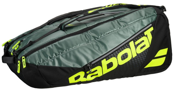 Babolat RH12 Pure Aero je vrhunska teniška torba z izrazitim dizajnom in kapaciteto do 12 loparjev, namenjena zahtevnim igralcem, ki želijo največ prostora in varnosti. Opremljena je z glavnim predalom za do 6 loparjev ter dvema dodatnima predaloma za loparje ali drugo opremo, ima stranske žepe za dodatke in prezračevan predal za obutev. Izdelana je iz vodoodpornih materialov, z zaščitenimi predali ter trajnostno, 100 % reciklirano notranjo podlogo brez barvil.