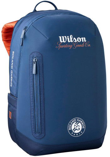 Wilson Roland Garros Session Soirée Super Tour Tennis Backpack je eleganten in funkcionalen nahrbtnik, zasnovan za prenašanje vse potrebne opreme na igrišče. Oblazinjen zadnji predal sprejme do 2 loparja in ima stabilne zadrge, glavni predal pa nudi dovolj prostora za opremo ter notranje organizacijske žepe. Sprednji zračen predal je namenjen čevljem ali mokri opremi, dodaten sprednji žep pa omogoča shranjevanje manjših dodatkov. Ob strani sta na voljo razširljiv žep za žoge ali steklenico ter manjši dodatni žep za osebne predmete. Oblazinjene in nastavljive naramnice zagotavljajo udobno nošenje. Dimenzije 48,3 × 33 × 17,8 cm.
